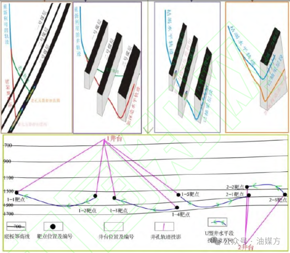 以上老井再利用方案需要根据区域资源潜力、煤层空间结构、枯竭井孔轨迹特征等为依据,灵活选择。