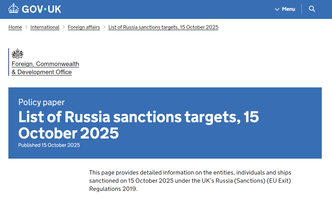 制裁名单链接: https://www.gov.uk/government/publications/list-of-russia-sanctions-targets-15-october-2025/list-of-russia-sanctions-targets-15-october-2025 文章来源:合规观澜&英国政府官网 编辑:华气能源猎头(微号:energyhunt) |